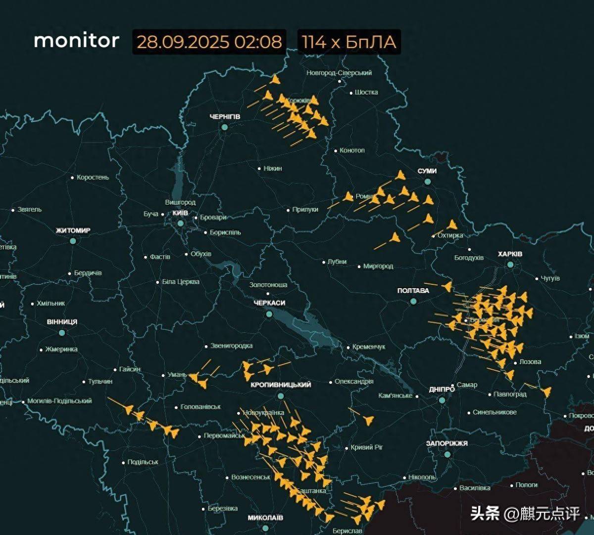 这次俄军出手极端强烈,简直倾尽各种导弹类型:米格-31K战机挂载“匕首”高超音速导弹直接发射;“伊斯坎德尔-M”战术导弹也出手数枚;长途战略轰炸机图-95MS和图-160从远空发射了三十余枚Kh-101巡航导弹;黑海舰队的护卫舰发射了6枚“口径”巡航导弹;一起,伊朗制作的“沙赫德-136”无人机三五成群地扑来。进犯规模极广,从基辅州到敖德萨、赫梅利尼茨基、苏梅、扎波罗热等多地都遭到冲击,铁路、电力、工厂以及防空设备都是要点方针。