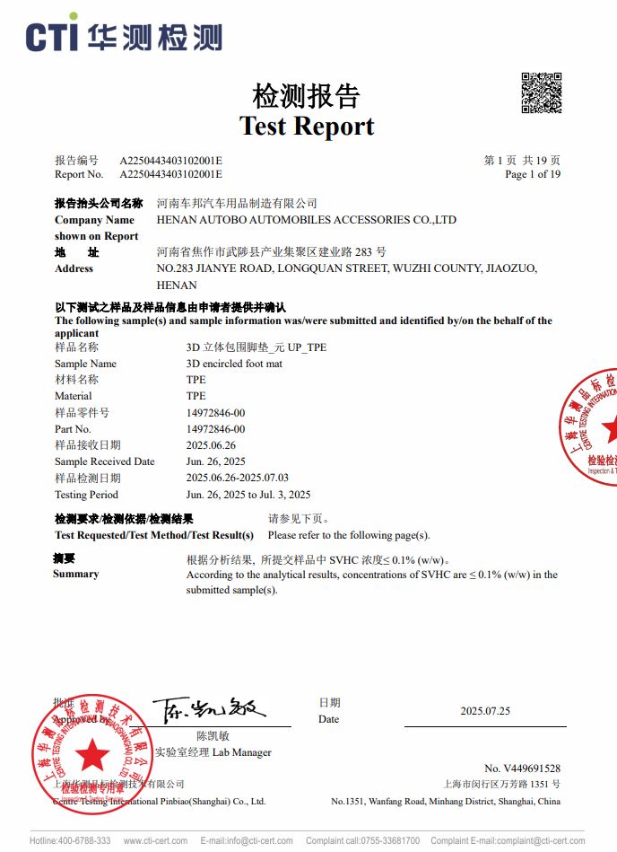 在海外商场,五福金牛的展品矩阵中,TPE吸塑脚垫、注塑脚垫、淋膜脚垫、平面脚垫四大系列均经过国内外两层环保认证:国内经过我国环境标志产品认证(十环认证),世界上取得德国莱茵TV、美国EPA、欧盟REACH等苛刻规范背书。