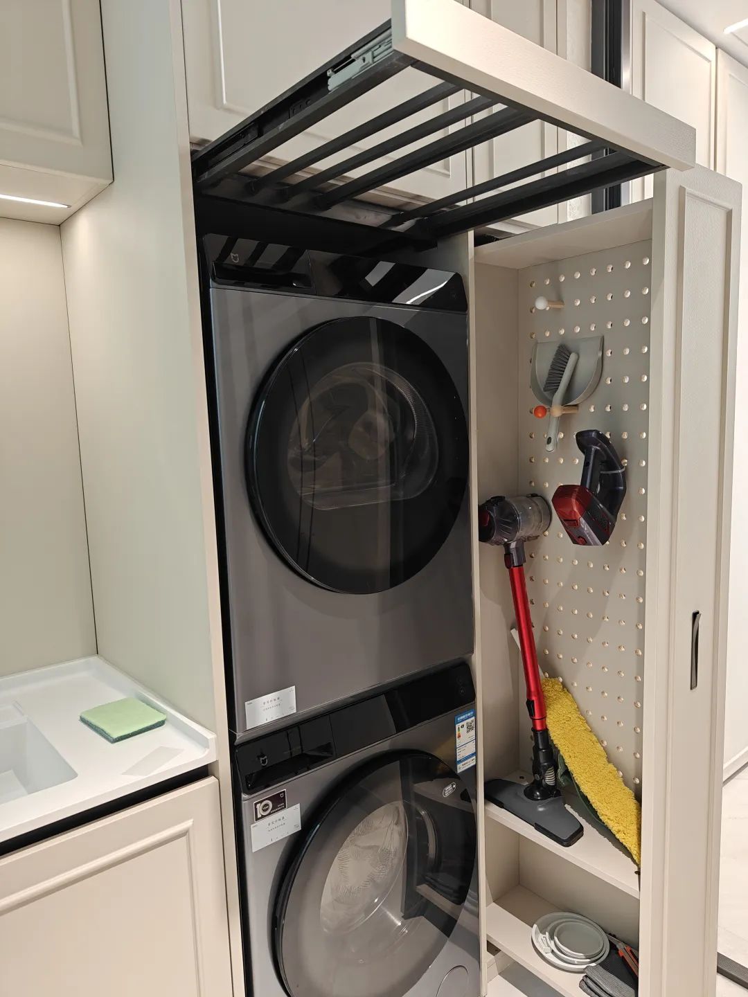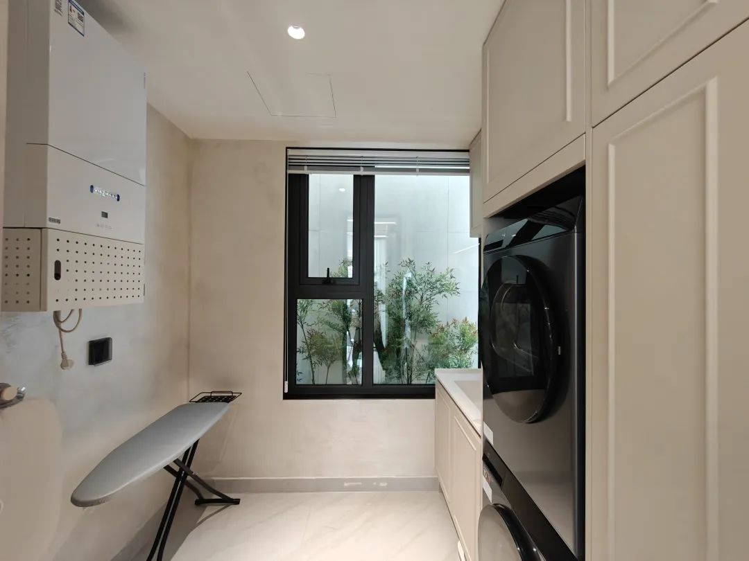 在厨房北侧便是设备平台,这部分也是赠送面积,这里可设为成家政间,并且项目也做了储物空间的打造。