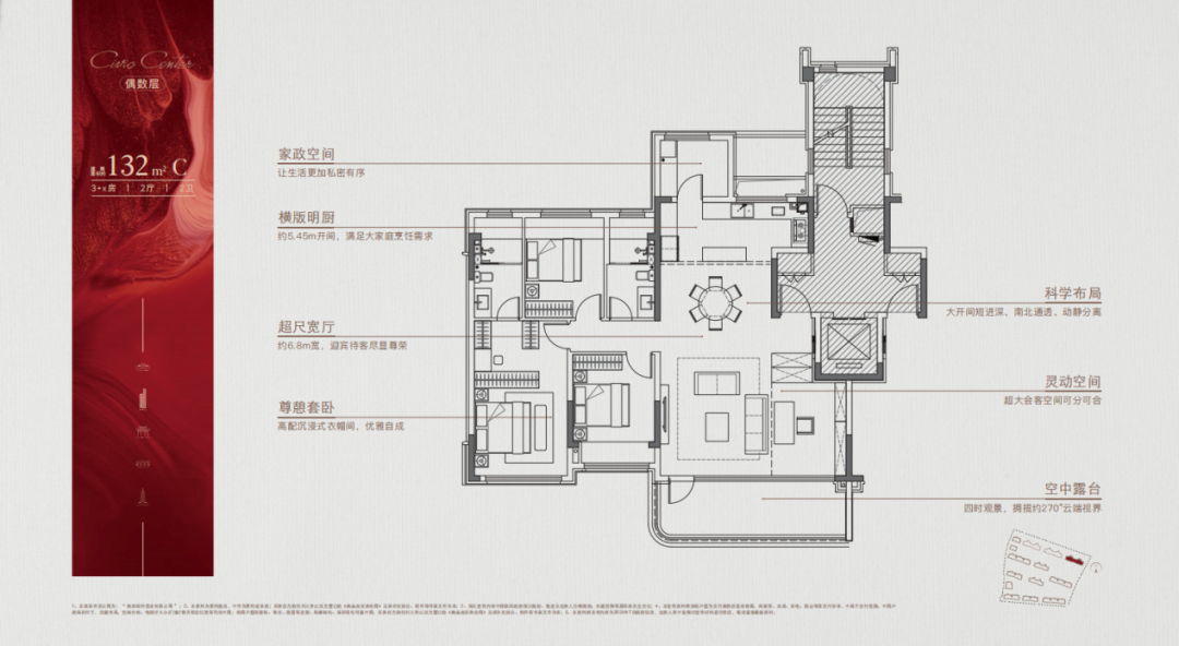 全屋收纳体系、华为智慧控制管理系统、室内海派家装设计风格、超大露台空间、3+x房成长空间设计,超100%得房率